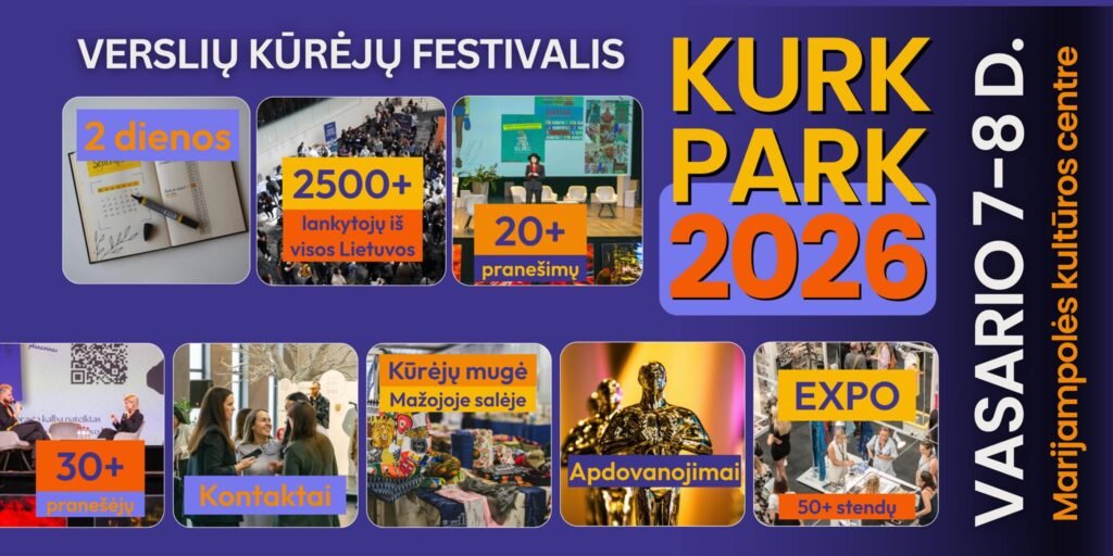 KURK PARK 2026 verslių kūrėjų festivalis vyks 2026 m. vasario 7–8 d. Marijampolės kultūros centre.